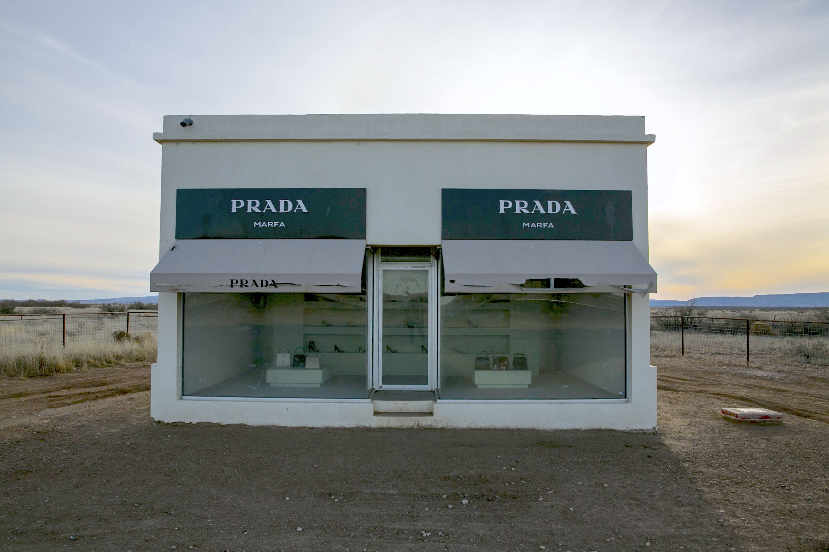 Fly into El Paso and drive about 2 and a half hours along the Mexico/US border to Marfa. A must-see stop is their most famous exhibit along the way, The Prada Marfa. Off of highway 90, this art installation is disguised as a pho-Prada store. The exhibit displays vintage designer products in the windowsill as the awning eerily flaps in the wind in the Texan desert. After the Prada stop, drive another 45 minutes to the city of Marfa.