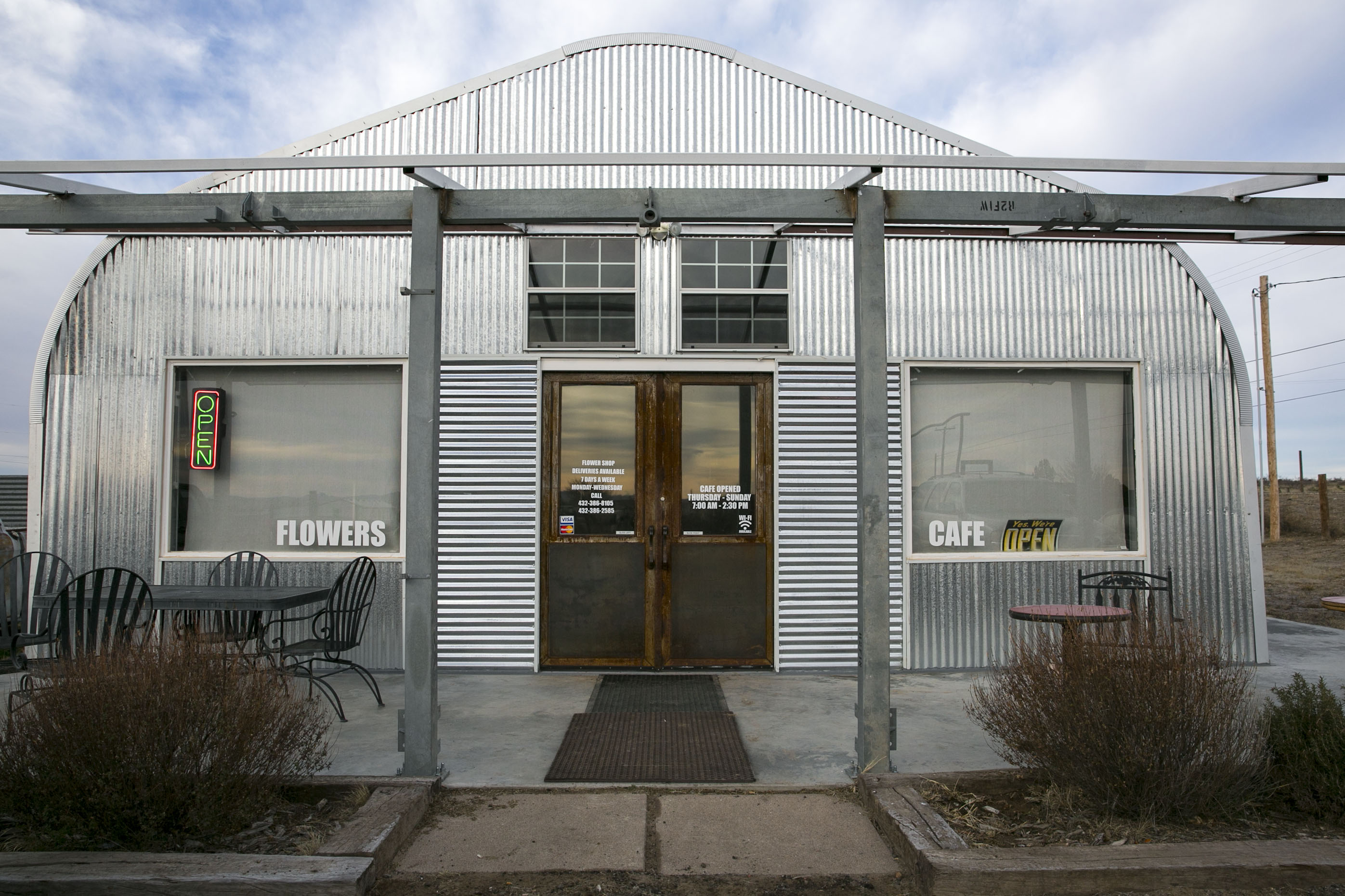 Our favorite coffee shop in Marfa is located right behind the Marfa Book Store. It’s a homey atmosphere with a homey fireplace, free wifi, and the best coffee in town. They offer Blue Bottle Espresso and pour overs from a Dallas-based roaster.