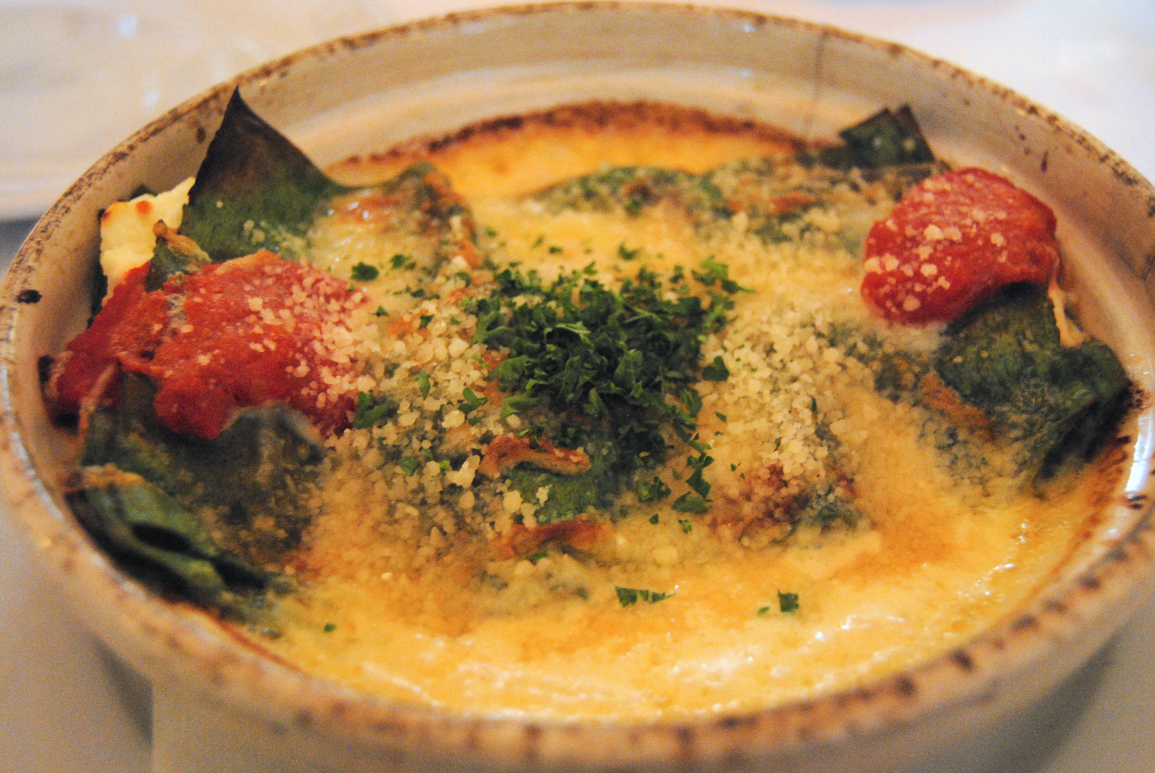 Check out this simple Italian restaurant in town serving large portions, flavorful food, and a cool atmosphere. Their house bread is addictive, so try to limit yourself to a few pieces but save lots of room for the rest of your supper. We ordered a glass of their suggested white wine to pair with a delicious made-from-scratch spinach lasagna.